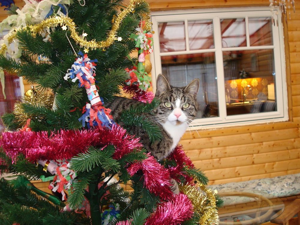 Det är jul i Hofors och det finaste sitter i granen. Bondkatten Kenzo pryder sin plats.