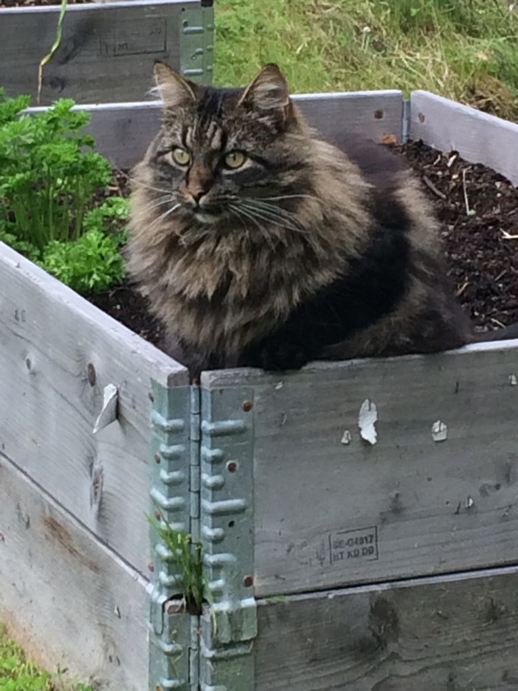 Se upp möss. Alfred från Järna har hittat en hyfsat hög utkiksplats i rabatten.