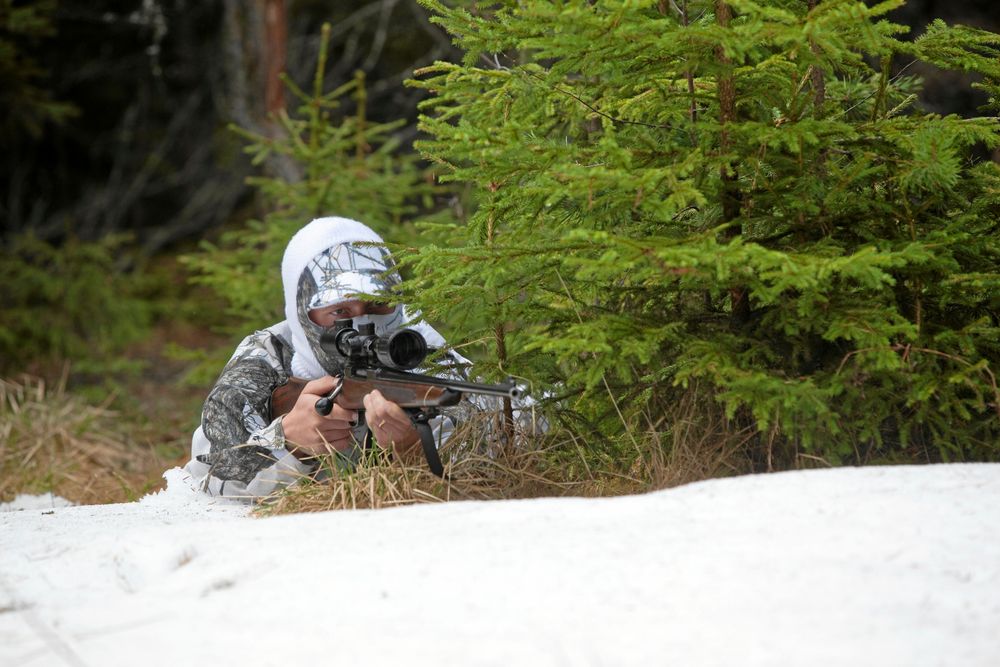 Utanför Edsbyn i Hälsingland gör vi i början av mars vår premiärtur med pipan, kamouflagekläder och studsare. Efter visst funderande och kontrollerande av vinden smyger vi oss fram till kanten av en åker.