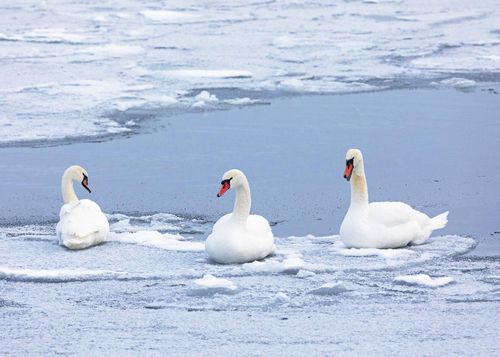 Stilla svan betyder inte fastfrusen svan. Förmodligen tar den det bara lugnt i kylan. Låt den ligga. Och ring inte polisen!