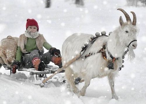I norrbottniska Muskus ser tomtens ekipage så här fint ut – med getabocken Enok som drar släden!