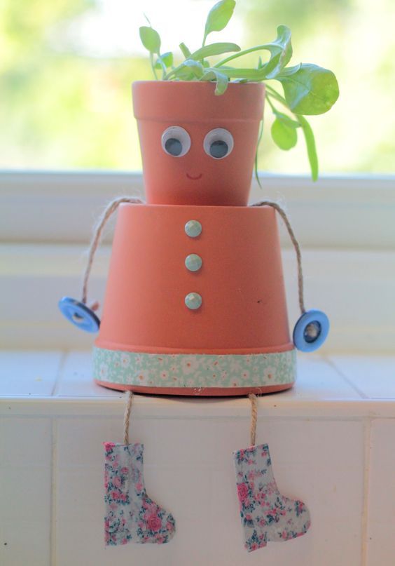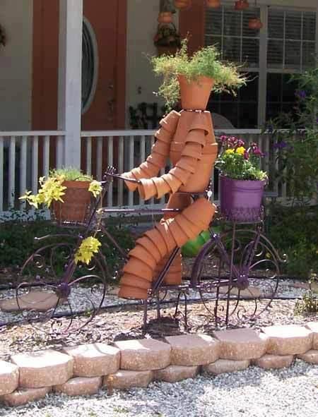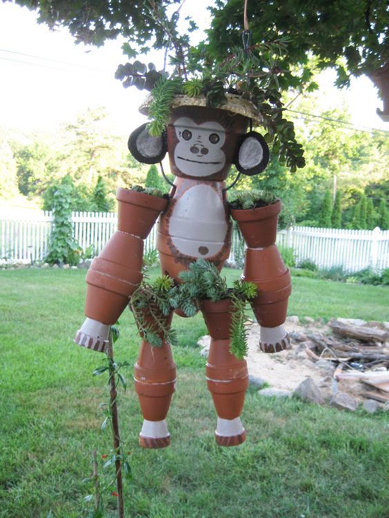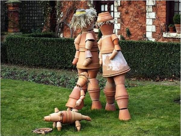 Grunden är enkel, terrakottakrukor på snöre eller ståltråd som fästs i varandra. Sedan är det bara fantasin som sätter gränser! Här är 14 roliga krukfigurer som förgyller din trädgård!