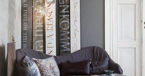 Genom att skriva några väl valda ord påöverblivna plankor och ställa dem mot en vägg gör du rummet personligt.