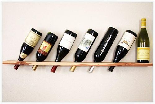 För en rå look i köket, såga några hål i en planka och förvara vinerna där!