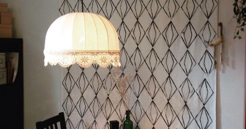Ett roligt sätt att återanvända gammalt tyg och gamla lampstommar är att göra en öppen lampa.