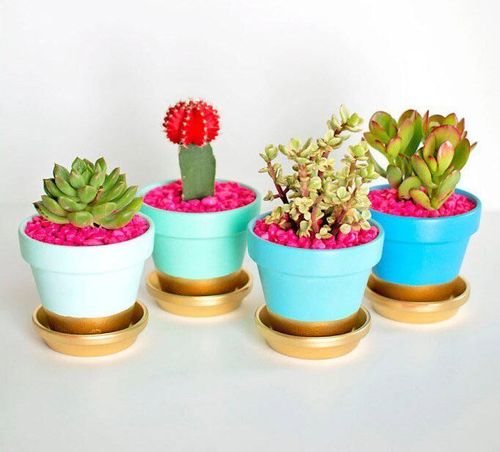 Måla flaskor och krukor och dekorera med tejp. Plötsligt blir det röriga och trista enhetligt och fint. Det här är också ett perfekt pyssel för dig som tröttnat på fula plastkrukor.