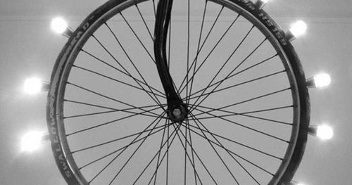 Om du har ett gammalt urverk och är kunnig på hur klockor fungerar kan du skapa denna grymma klocka av en gammal cykelkedja och siffror. Urverket drar kugghjulet i mitten runt, runt. I stället för visare har hjulet fått kontakt med en pyntad cykelkedja.
