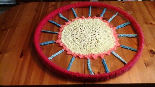 Dekorera trädgården med gammalt skot. Läsaren Ruth Hammarkvist virkade in ett gammalt cykelhjul, se så fint det blev!