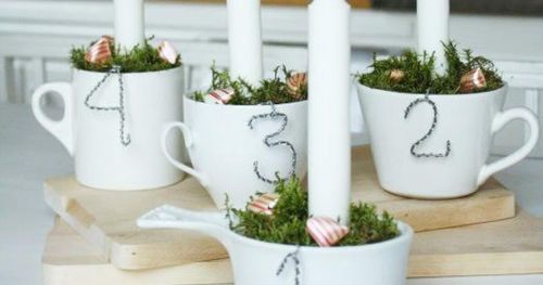 Låt enkla koppar bli adventsljusstake i år, pynta med ståltråd och karameller!