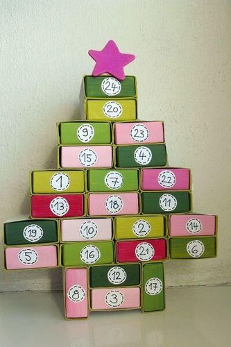 Att använda tändsticksaskar för att bygga ihop en adventskalender är en riktig klassiker. Här ser du den som gran!