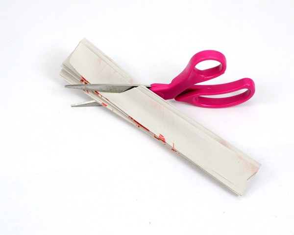 2. Nu är det dags att trimma kanterna. Vik ihop igen och klipp kanten i en 45-gradig vinkel.