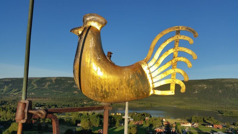 Kyrkan byggdes 1706 efter att två tidigare brunnit efter blixtnedslag. Kanske denna tupp har beskyddande kraft, funderar Lennart Svensson som nominerar.