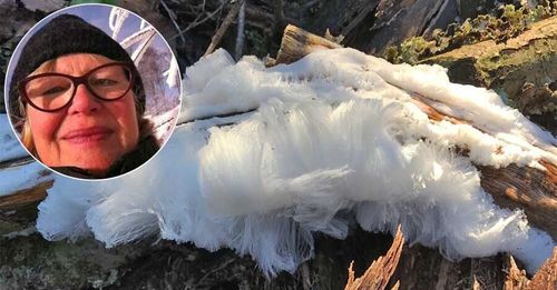 Kerstin Ljungström i Delsjöfors stötte på ett märkligt is-fenomen på sin skogspromenad. Det såg ut som om tomten tappat lösskägget vid stubben – men det var inte vad SMHI sa att det var.