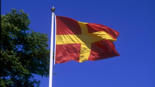 Den skånska flaggan, med gult kors och röd bakgrund, blir officiell skånsk symbol.