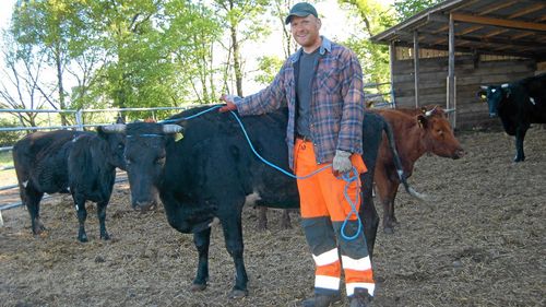 Rasen på bilden skulle egentligen inte finnas – om det inte vore för Johan Widing på Bokeslundsgården. Han tog över tre hondjur i sista stund. Nu väntas nya kalvar på gården.