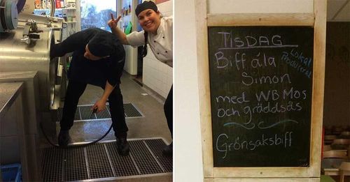 Bonden Simon Renström kom med kött från den egna gården. Då blev det hög stämning i matsalen i Björnåkersskolan i Burträsk – här är orsaken.