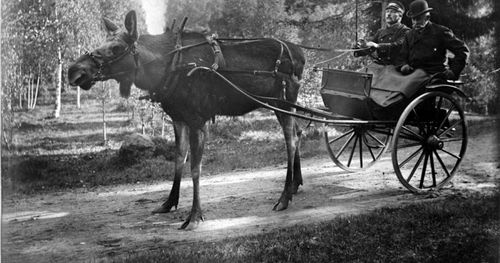 Många har hört historierna om de tama älgarna från förr. Här är bildbeviset på hur det kunde se ut när det förra seklet var ungt.