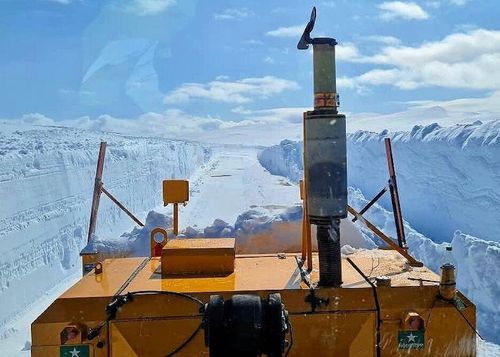 Vilket härligt vårtecken! Nu börjar Bertil Fjellström ploga fram Vildmarksvägen igen! Meter för meter genom hårt packade snöväggar.