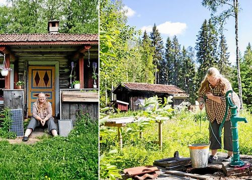 Snacka om att växla ned till ett enklare liv. Pia Schnuchel älskar sin fäbod i skogen i Dalarna - utan el och rinnande vatten och med utedass.