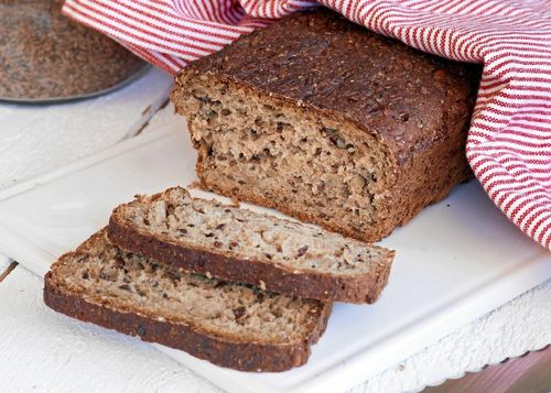 En kladdig deg som inte behöver knådas ger ett saftigt grovt rågbröd med linfrön och solrosfrön.