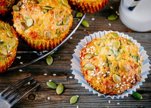 Ett superenkelt mjölfritt recept på saftiga matmuffins med frön och kärnor.