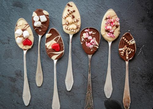 Ge bort söta matskedar med choklad att doppa i varm mjölk. En perfekt present!