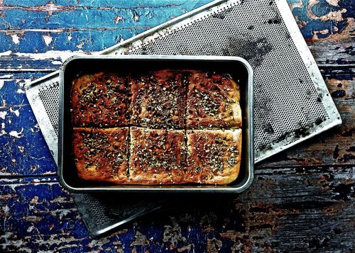 Det härliga långpannebrödet ska jäsa över natten. Grädda på morgonen och njut till frukost.