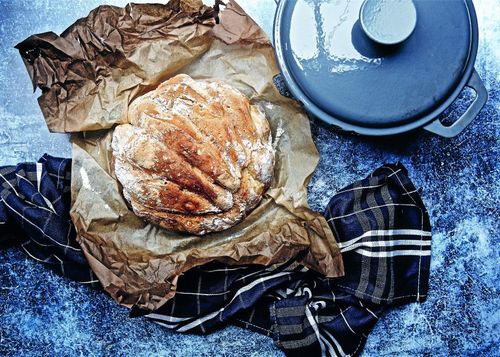 Gjutjärnsbröd med citron och timjan ska jäsa över natten. Efter gräddningen får det en härig skorpa.