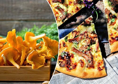 Pizzabotten på dinkelmjöl toppas här med färska kantareller, flytande honung och grovriven västerbottensost.