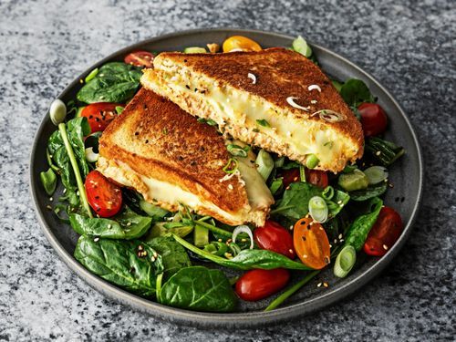 Het tonfiskröra med smältande ost i smörstekt bröd. Det är tonfiskmacka med sting eller spicy tuna melt i mästerkocken Jennie Walldéns version. Som är supergod!