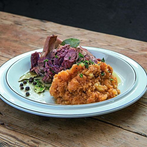 Egentligen är det såsen i den här rätten som gör det. Eller vad sägs om svarta vinbär, porter och mustig sötma av enbär och timjan?