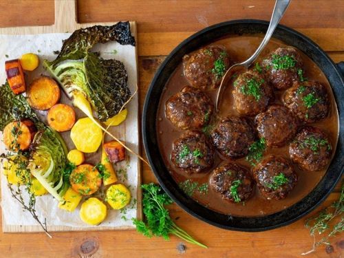 Riven ost i färsen ger köttbullarna extra djup i smaken och en fin sälta. Lands Katarina Ekeströms härliga recept är en riktig höjdare!