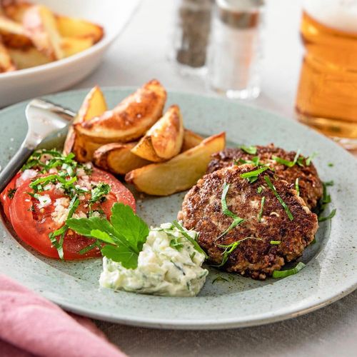 Medelhavsinspirerade köttfärsbiffar smaksatta med fetaost, oliver och timjan är enkla att göra. En given succé.