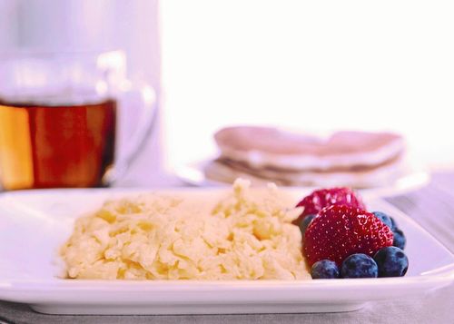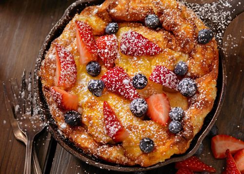 Denna pannkaka ska dras isär i stora bitar med hjälp av en gaffel innan den äts tillsammans med färska bär och vispgrädde.