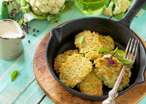 Variera middagen eller lunchlådan med blomkålsbiffar och yoghurtsås.