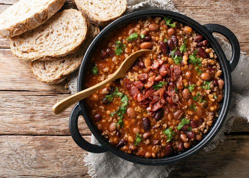 Den här enkla soppan med köttfärs, bönor och potatis är både god och mättande.