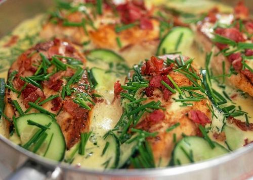 Arlas sommarkyckling med gräddig sås, gräslök, gurka och knaperstekt bacon är så god att du kommer vilja äta till sista droppe.
