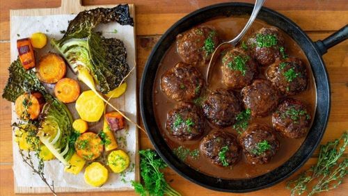 Riven ost i färsen ger köttbullarna extra djup i smaken och en fin sälta. Lands Katarina Ekeströms härliga recept är en riktig höjdare!