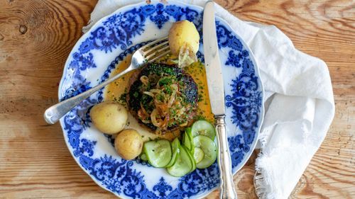 En riktig husmansklassiker – köttfärsbiffar med mjukstekt lök! Så gott, så mustigt, så svenskt!
