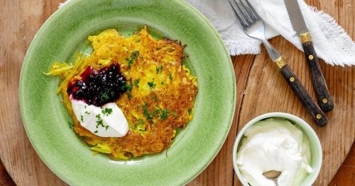 Gyllengula, frasiga, nystekta. Katarina Ekestrands rårakor på gulbeta med snabbsyltade vinbär till – godare än så blir det inte!