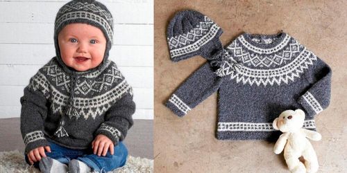Den klassiska tröjan och mössan med ok har stickats i ett fantastiskt lent garn av lama-ull.