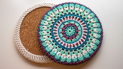 Pimpa upp tråkiga korkunderlägg med ett virkat överdrag i pigga färger. Det här är ett avkopplande handarbete och vips så har du den perfekta julklappen!