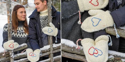 Nu kan du hålla handen utan att någon av er behöver ta av sig vanten. Här är mönstret på vanten för två, dessutom stickad med reflexeffekt.