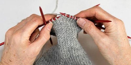 Vänd upp och ner på stickningen. Börja vid tårna och kravla dig upp mot en helt ny sorts häl. Här får du lära dig ett nytt sätt att sticka sockor på.