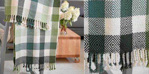 Den här varma, fina pläden är ett nöje att väva. Tekniken kallas gåsögon.