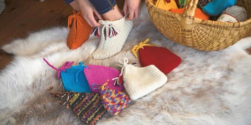 Snart kommer snålblåsten. Ladda för golvkalla dagar med en hel korg lättstickade tofflor.