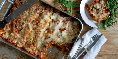 Det är något speciellt med mat som kan tillagas i en stor ugnssäker form och toppas med smakrik riven ost. Det här receptet kommer bli en favorit!