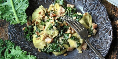 Visst passar våra svenska råvaror utmärkt ihop med den italienska tortellinin. I stället för parmesanost, parmaskinka och svartkål använder vi här kryddost, kassler och grönkål.