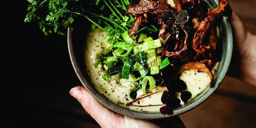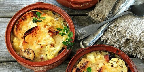 Här är en värmande favorit i soppvärlden, gratinerad blomkålssoppa med svamp och fläsk. Vilka smaker!