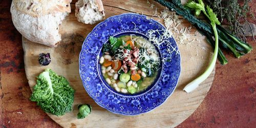 Den italienska kål- och bönsoppan ribollita är värmande vintermat med kål, bönor, bacon och ost.